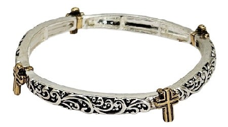 Gold Cross Accent on Antique Silver Stackable Stretch Bracelet $13.00 Retail