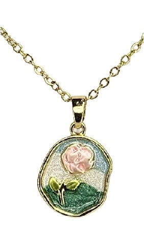 Epoxy Flower Inside Gold Disc Pendant - 16"-18" Gold Chain Necklace $12.00 Retail