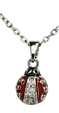 Clear CZ's on Silver Ladybug Pendant - 16"-18" Silver Chain Necklace $14.00 Retail