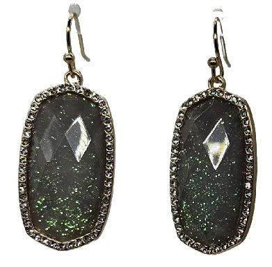Clear Crystal Outline Gray Epoxy on Gold Dangle Earring $12.00 Retail