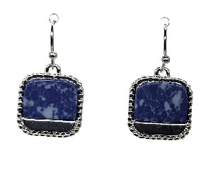Blue Stone on Shiny Silver Square Dangle Earring $8.00 Retail