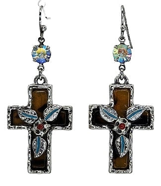AB Crystal Top - Brown on Silver Cross Dangle Earring $12.00 Retail