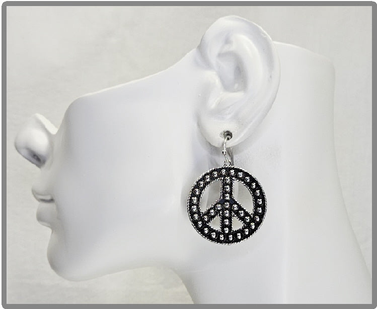 Antique Silver Peace Sign Dangle Earring $10.00 Retail